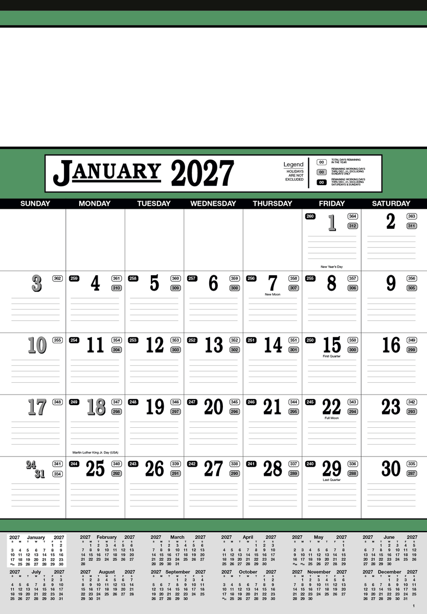 Stay organized with this 13-sheet calendar, featuring a full calendar along the bottom for quick reference. Lined date blocks make it easy to keep track of dates and stay on top of your schedule. The SFI® label means that materials used for this product have been responsibly sourced.